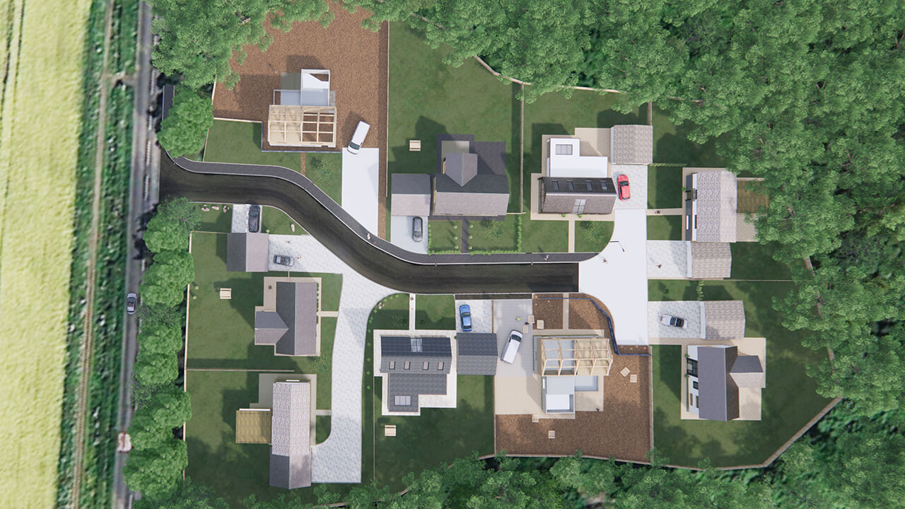 A unique collection of 9 serviced building plots for bespoke homes outside Durham. Trinity Mews afforded the fortunate homebuyers to realise the dream of building a beautiful family home.